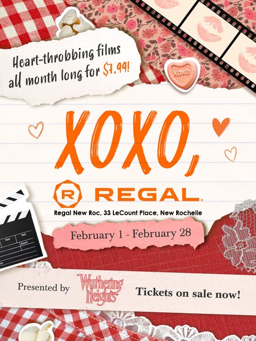 Looking for an easy, cozy reason to visit downtown this February? Regal New Roc is turning the entire month into a celebration of movie romance with “XOXO, Regal” — 28 romance films playing every day in February.