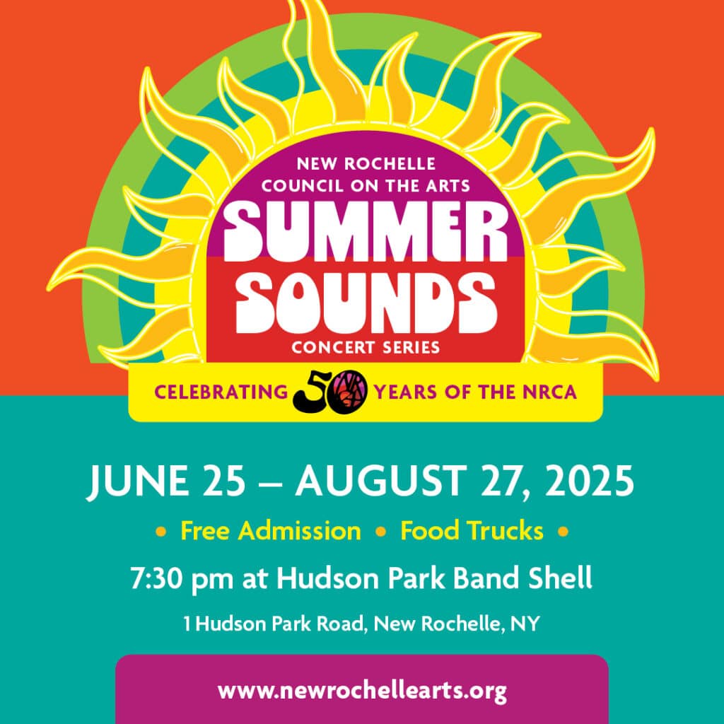 NRCA Summer Sounds Concert Series Wednesdays, June 25 – August 27, 2025 7:30 PM (unless otherwise noted) Location: Hudson Park, 1 Hudson Park Road, New Rochelle, NY The New Rochelle Council on the Arts (NRCA) presents the Summer Sounds Concert Series — a beloved tradition of free, live music by the water. Held every Wednesday evening at the Hudson Park bandshell, this summer series offers a diverse mix of bands and musical styles. Food trucks on-site each week make it a perfect night out by the Sound. Full concert schedule: Summer Sounds 2025